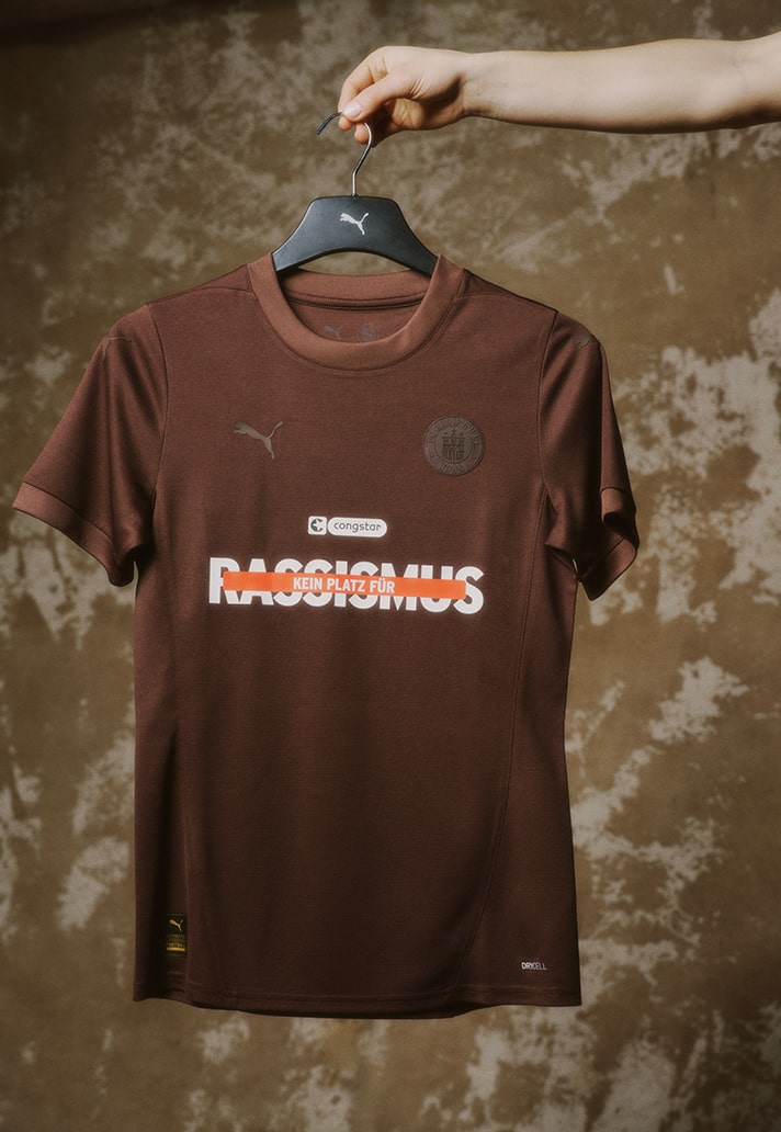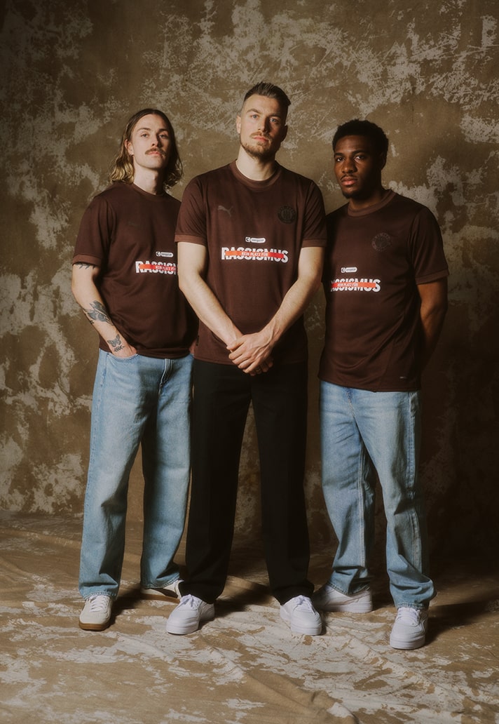 FC St Pauli are showing their support for anti-racism with a special edition kit which they will be debuting in their Bundesliga fixtures against FC Bayern Munich on 29 March. The all-brown jersey sends a clear message to the football community – Racism has no place here, neither on or off the pitch.