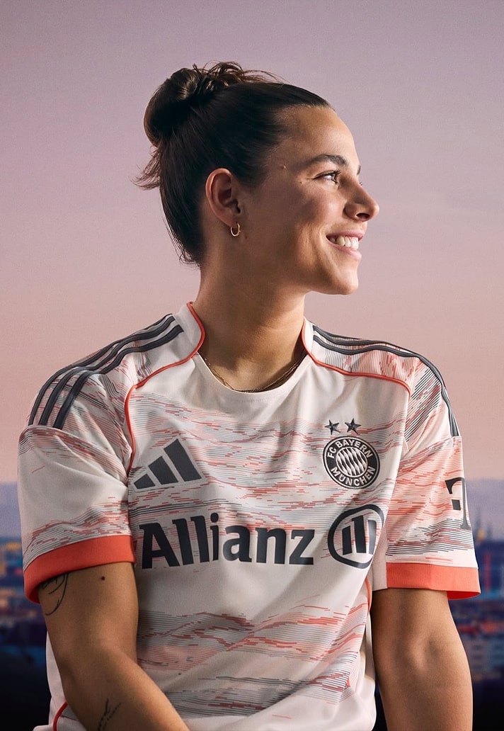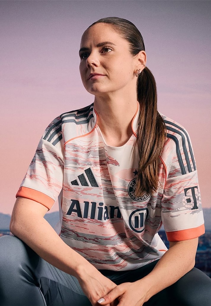 As football continues to lean into its emotional ties with place, culture and memory, the Bayern Munich 25/26 away jersey is as much about sentiment as it is about style. The Allianz Arena has been Bayern's fortress since 2005, and the new away shirt encapsulates its architectural influence in a sleek, modern execution that bridges eras. The jersey comes in a clean white base – a nod to clarity and future-focus – but it’s the subtle camouflage pattern in grey and bright coral that pulls you into the story. Inspired by the stadium’s luminous exterior panels, the digital-style design spans the front, sleeves, and lower back, giving the shirt a layered texture that feels alive with history.