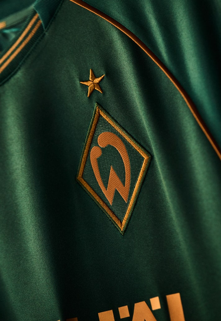 Some kits speak louder than words. Draped in a bold dark green, Werder Bremen's new third shirt for the 25/26 season from hummel immediately commands attention, but it’s the copper detailing that really tells the story. Symbolising heritage, triumph, and time-worn pride, the metallic accents elevate the look without shouting—just as you'd expect from a side steeped in understated legacy.