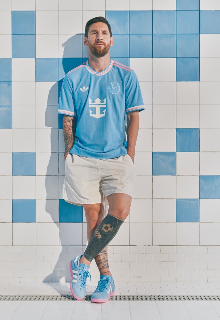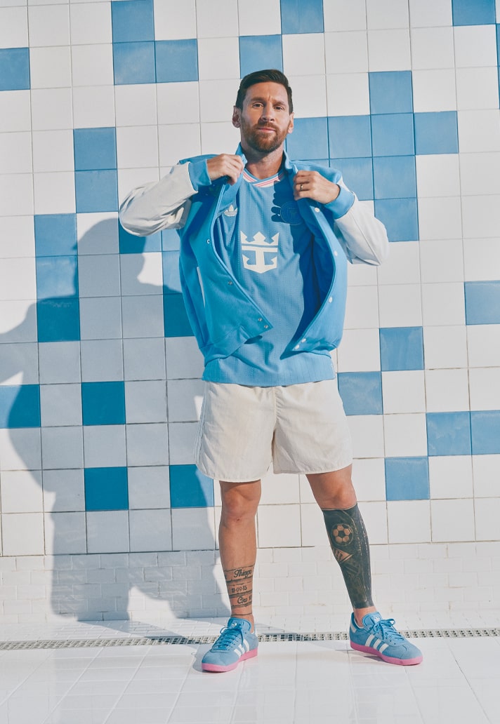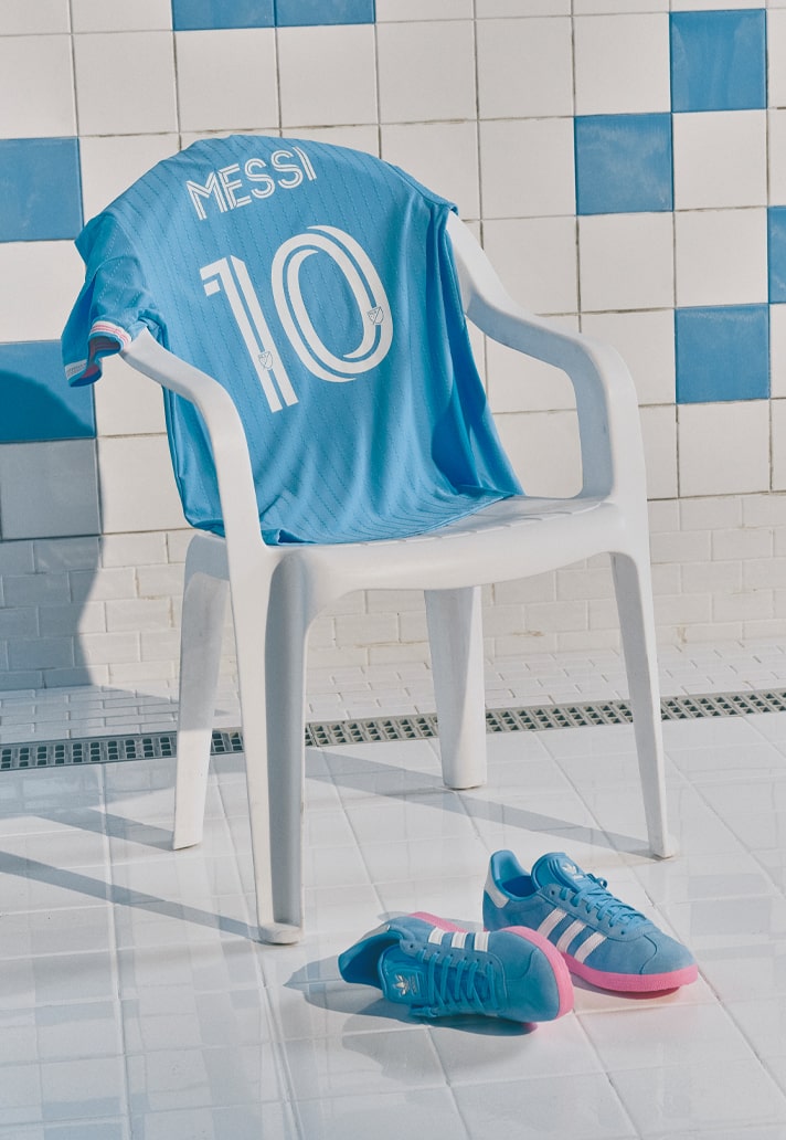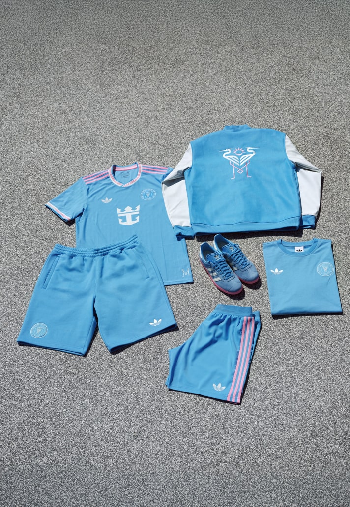 But adidas aren’t stopping at the kit. The drop extends into a full capsule collection. Think Gazelle sneakers with a coastal twist, a vintage-leaning varsity jacket, tee, and a split personality in the shorts department — one lifestyle, one performance — all cut from the same Miami Blue cloth. It’s a collection built to flow from pitch to party, from training ground to Wynwood Walls.