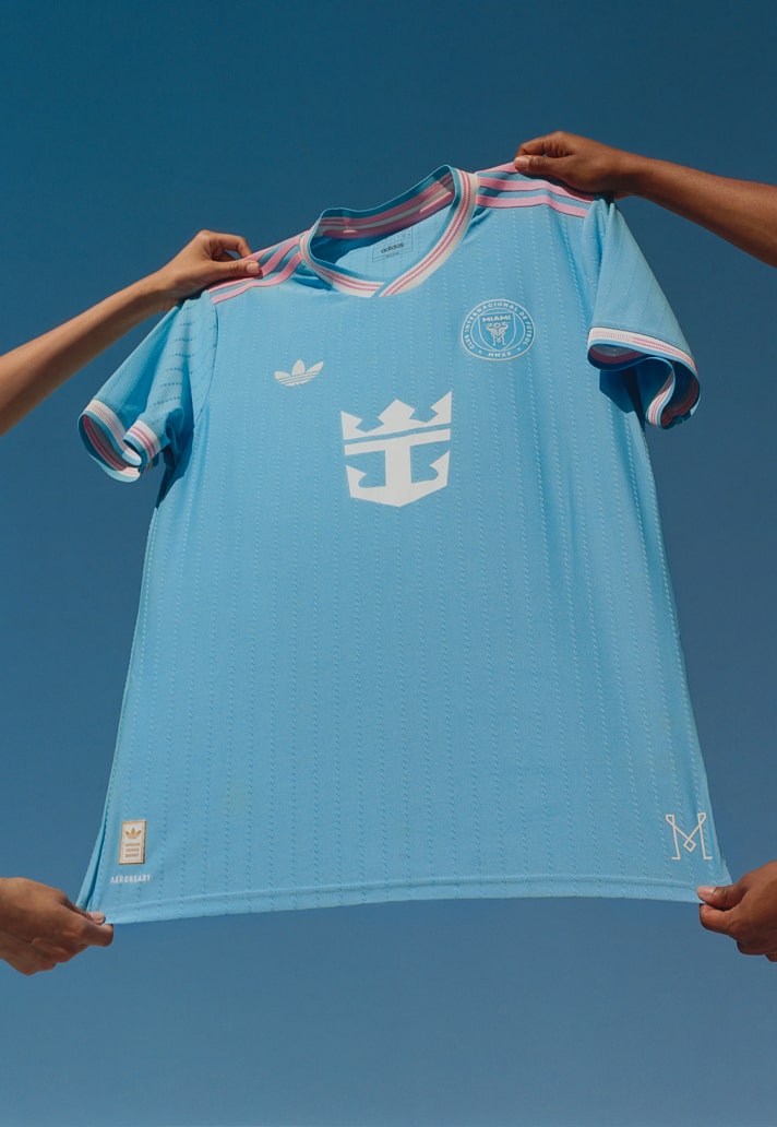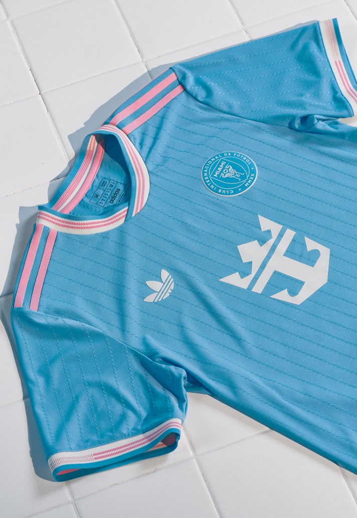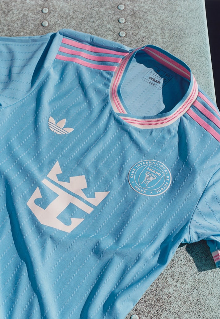 In true Miami fashion, bold doesn’t even begin to cover the new Inter Miami third kit. The design is an ode to Miami itself — its wild unpredictability, its resilience, its endless summer energy. The shirt’s vertical pinstripes bring a touch of tailored sophistication, slicing through the tranquil blue like waves lapping against the shore. Meanwhile, those pink accents — pure Inter Miami DNA — flow across the collar and shoulders like neon glows bouncing off Ocean Drive at sundown. It’s classic, it’s confident, and it’s unapologetically Miami.