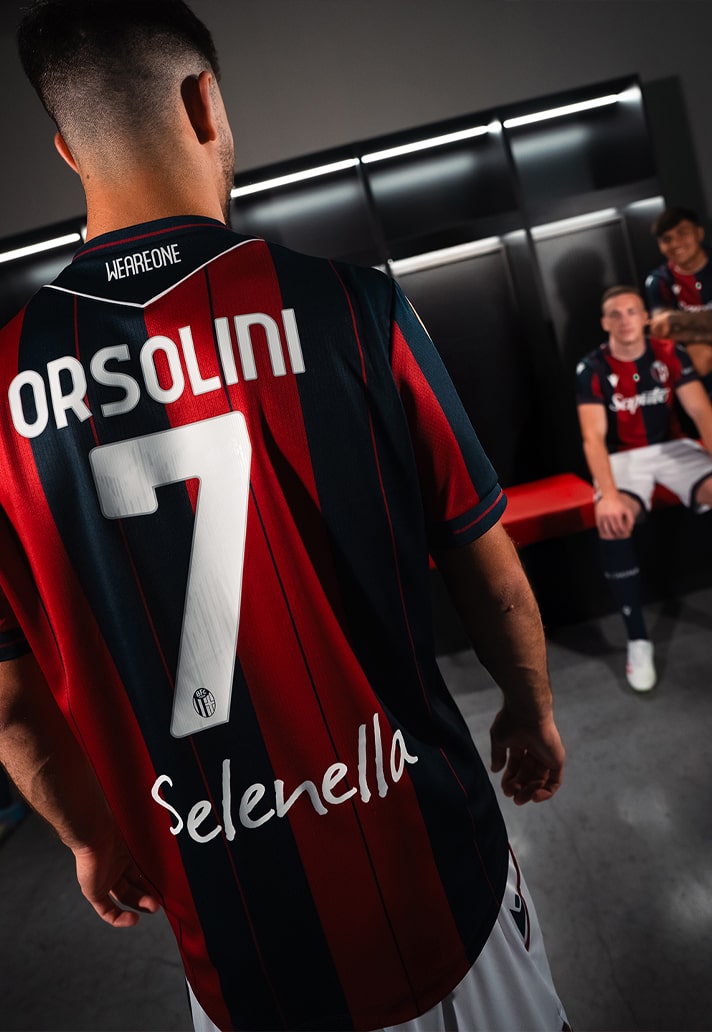 Inside the collar, Bologna’s soul finds its voice: “LO SQUADRONE CHE TREMARE IL MONDO FA” — the team that makes the world tremble. On the outside nape, a unifying battle cry: “WEAREONE.” It's a statement of identity, not just for those who wear it on the pitch, but for every Rossoblù across the globe.