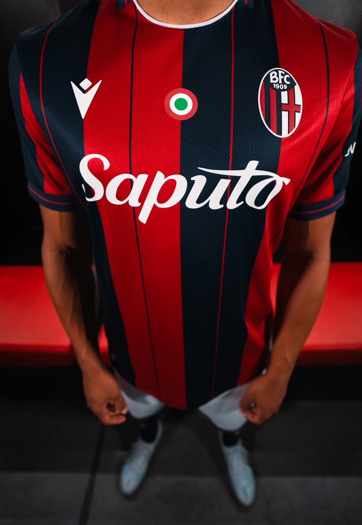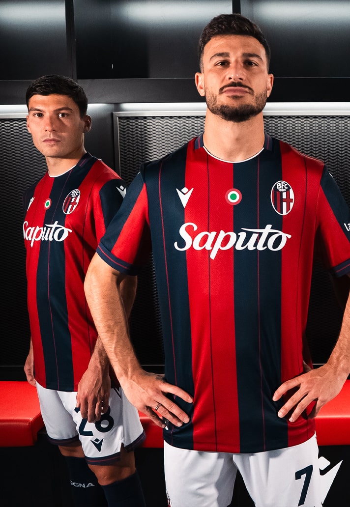 The new Bologna FC 1909 Home kit is available for purchase online at macron.com
