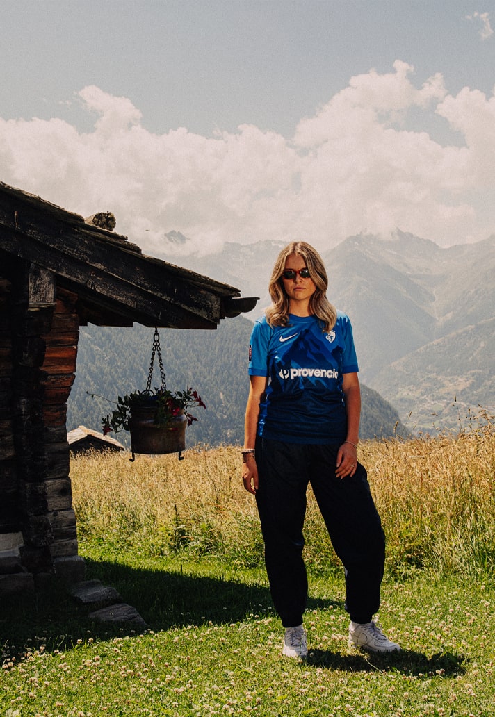 Where last year’s shirt featured abstract nods to the Alps, the 25/26 version pulls no punches. This is a kit that wears its environment on its sleeve — or rather, across its chest — and the launch shoot leans all the way in. Set among the Alpine peaks that overlook the city, the players become part of the landscape, the jersey an extension of it. There’s an emotional symmetry at play: club, culture, and community captured in a single visual identity.