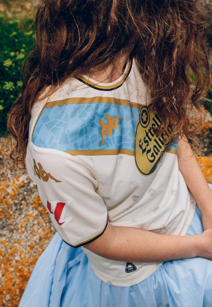 Where the home shirt nodded to tradition and the away kit played with bold reinvention, the new RC Deportivo third jersey from Kappa for 25/26 steps into more symbolic territory. Out goes the usual crisp white; in comes a subtle off-white base, paired with delicate gold detailing. The switch in palette gives the shirt a refined, almost sacred quality — like a relic reimagined for matchday.