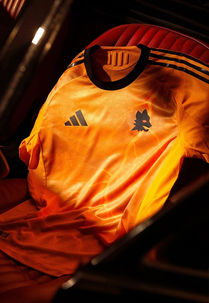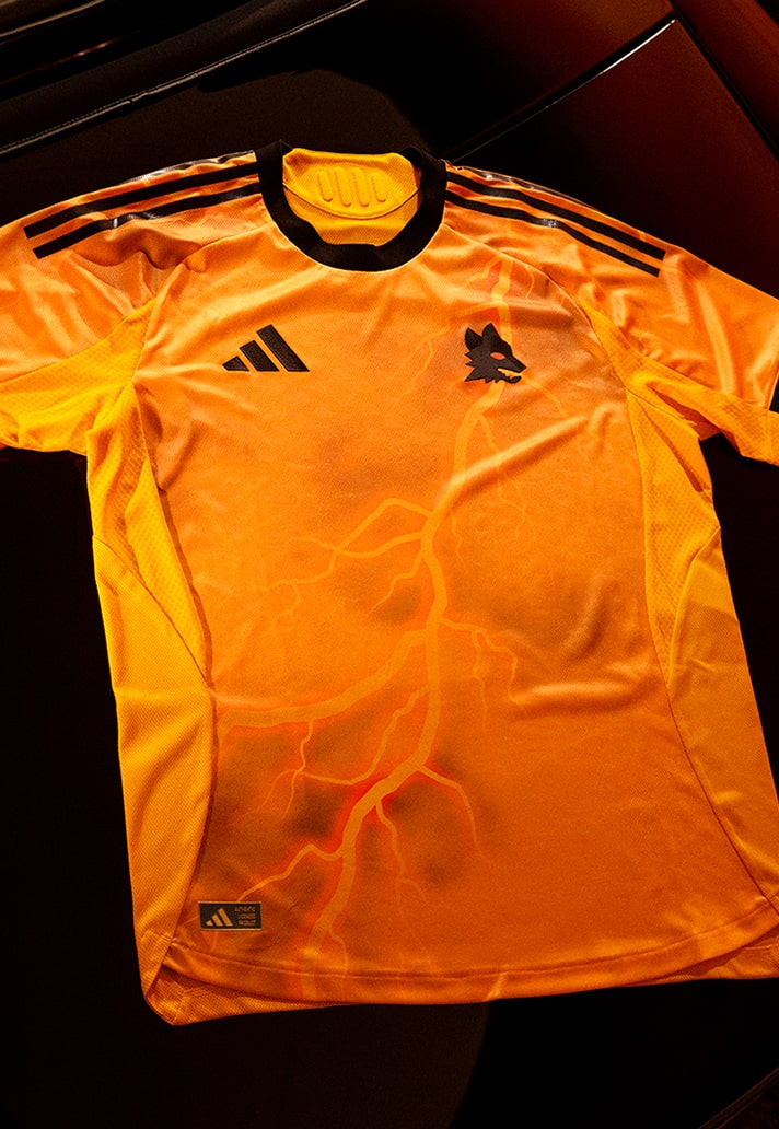 The away threads land as a visual ode to Rome’s foundation myth, reaching back to the ancient tales that shaped the city’s legacy. With a bold orange canvas setting the one, a striking lightning bolt graphic cuts across the shirt – a symbol tied to Mars, the god of war, thunder, and father to Romulus and Remus. In Roman mythology, Mars embodies destruction, power, and protection. For the 25/26 away shirt, AS Roma reimagines this lightning bolt not only as a weapon but as a metaphor for the club’s own resilient DNA. For the Giallorossi, it’s a design that will suit them up ready for Serie A war.