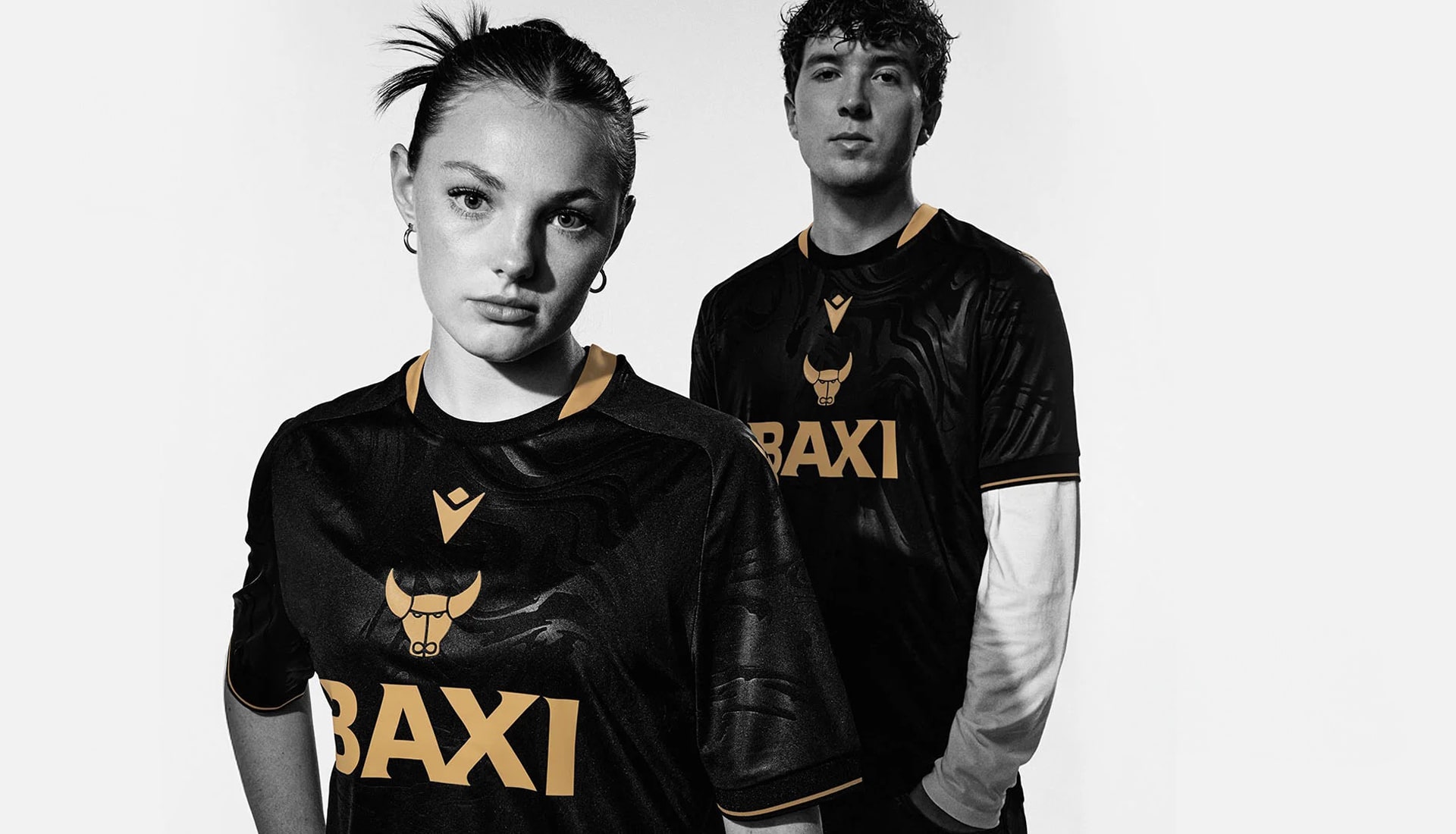 Gold trims on the crew neck collar and sleeve cuffs add a regal touch, while the Macron Hero and Oxford’s iconic ox head crest take pride of place stacked centrally on the chest, both decked out in a 3D-effect gold that pops perfectly against the deep black base.