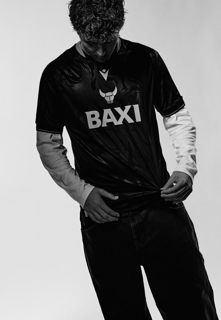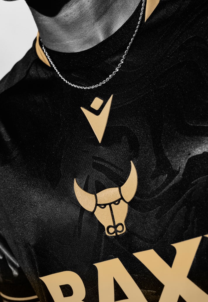 Round the back, the design continues with a nod to the club’s roots. “1893”, the year the club was founded, is heat-printed on the neck in gold, flanked by a pair of mini ox head motifs that tie it all together with subtle class.