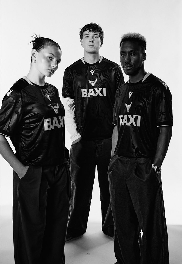 Inside the collar, a bespoke neck label keeps things close to home—and far from generic. Set against a navy background that mirrors the shirt’s tonal pattern, it features the club crest and the words “DREAM. INSPIRE.” in vibrant yellow. Below that, “Designed in Bologna” proudly certifies the Italian craftsmanship that defines every Macron kit, all produced at the brand’s innovation-driven Macron Campus in collaboration with the club.