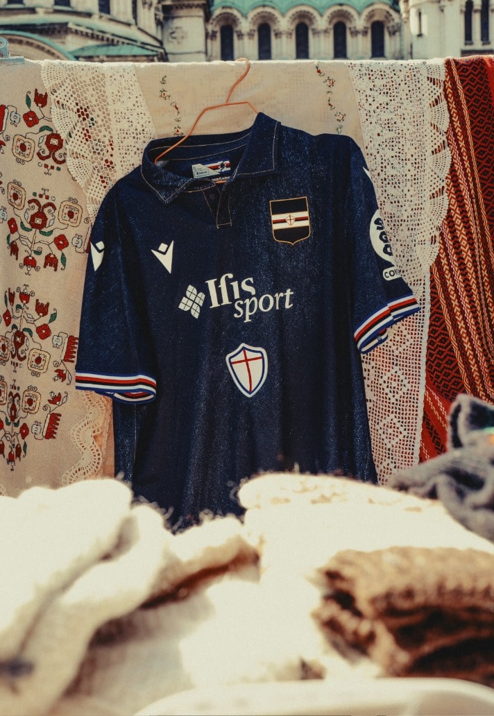 Macron haven’t just produced your average alternative thread. This is a love letter to Genoa, a city whose story was woven into the fabric long before football shirts became cultural pieces. Denim didn’t start in the high streets or the runways, it started here as Blu di Genova. The weathered cloth of sailors, cut for sails and trousers, hardened by sea spray and storms. This isn’t just fashion for them, it’s history. Now, that history returns to the pitch, carried on the shoulders of Sampdoria.