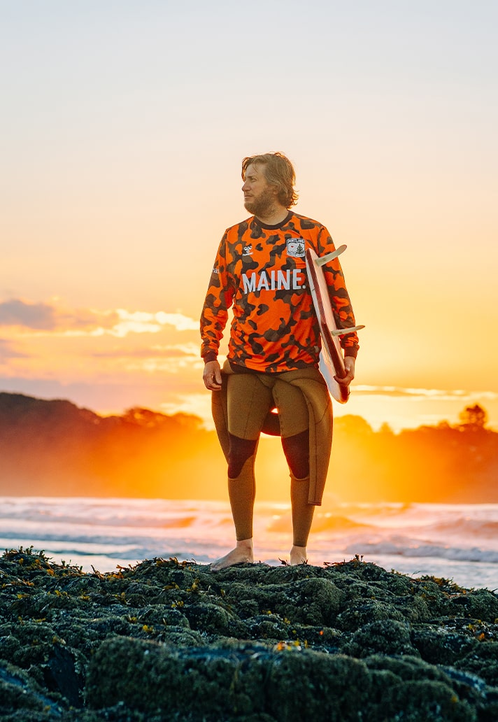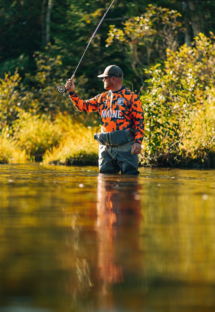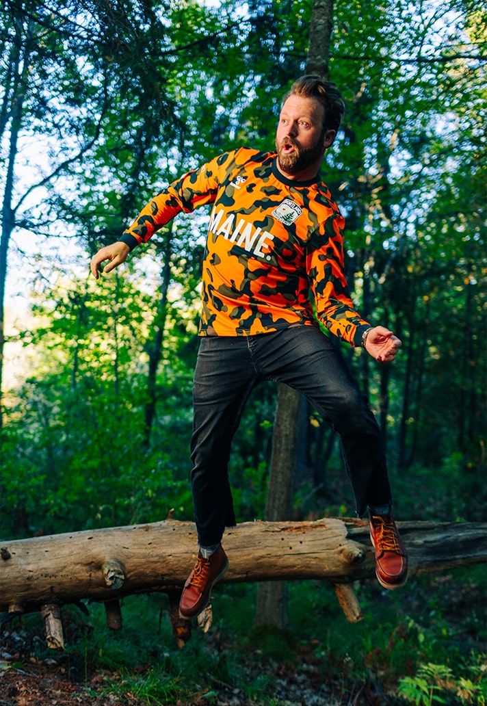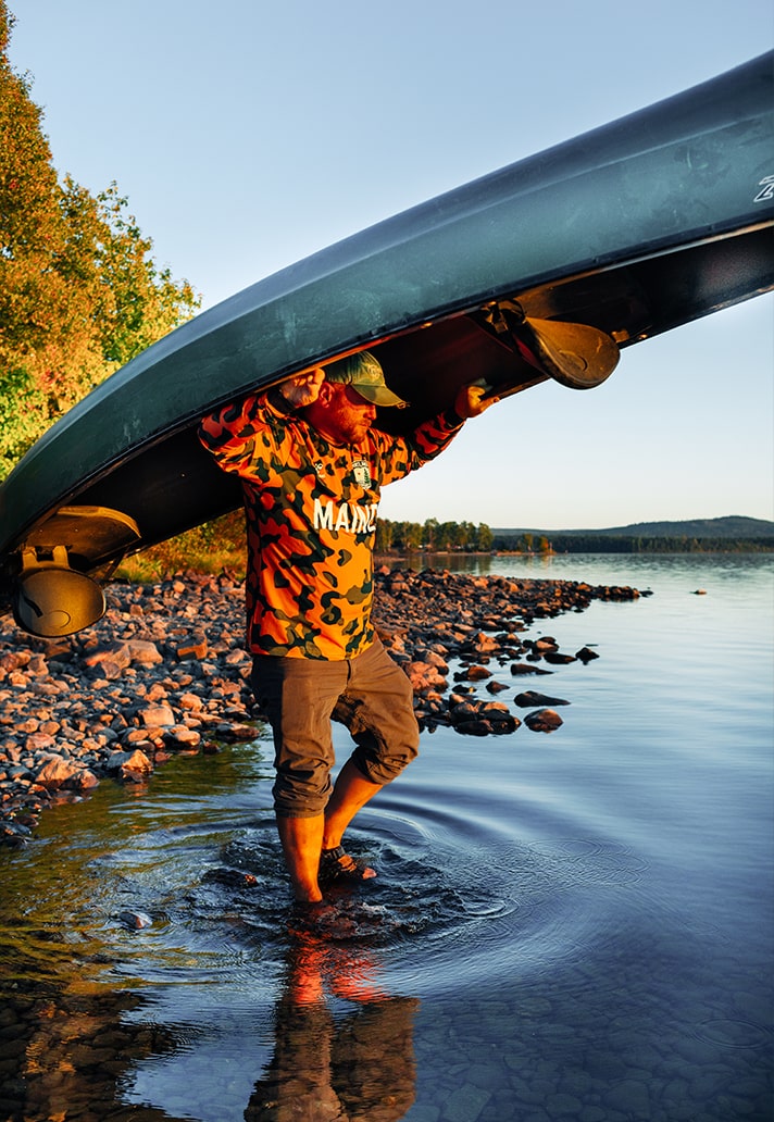 The Blaze Kit pulls its palette from the state’s own rhythms. Blaze orange is synonymous with Maine’s fall: worn by registered Guides, families trekking rural backroads, and sportsmen and women deep in the wilderness. On this shirt, the color becomes a symbol of protection, preservation, and belonging. It’s a heritage piece that bridges function and identity.