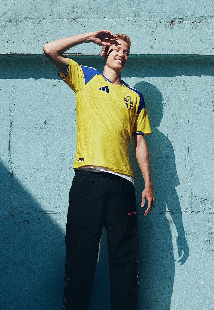 Sweden - The Three Stripes have reworked the classic yellow and blue of Sweden with a retro 70s edge, and it looks class. A subtle tonal graphic runs through the fabric, inspired by the floral stitching once seen on denim and traditional Swedish folk dresses. Pure nostalgia. Finishing it off, ‘Sverige’ is stamped across the back of the neck in a sleek, modern typography. A proud sign off.