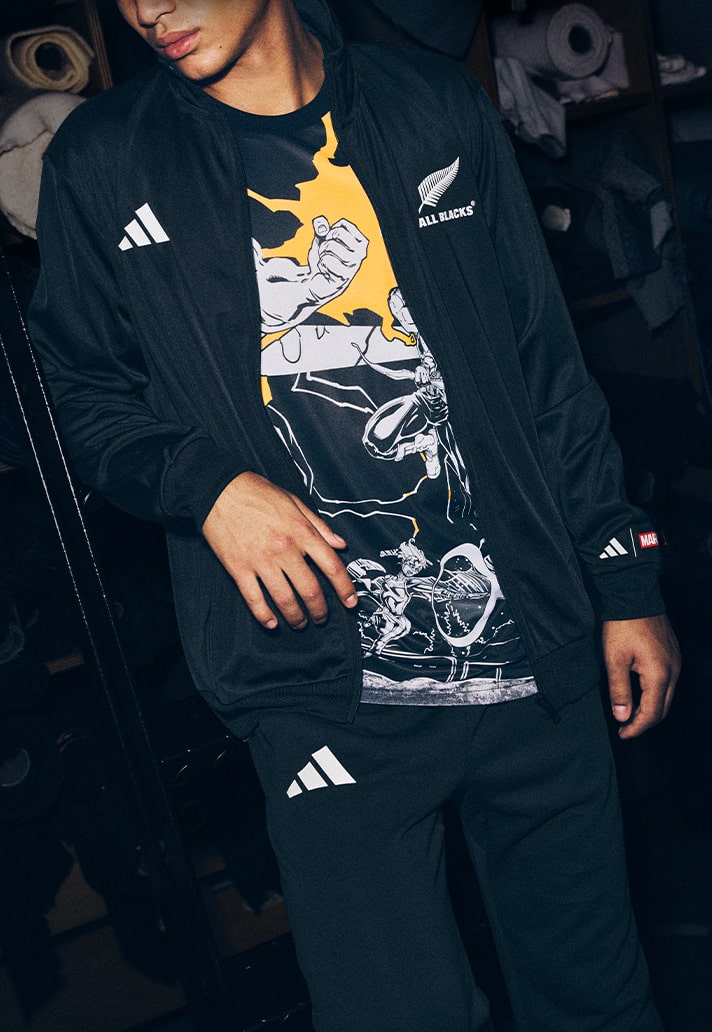This is one you probably didn't see coming. And neither did we. Adidas have linked up with three giants of culture, sport and storytelling for a crossover unlike any other. Marvel, Real Madrid, and the All Blacks collide in a collection that’s straight out of another alternative universe.