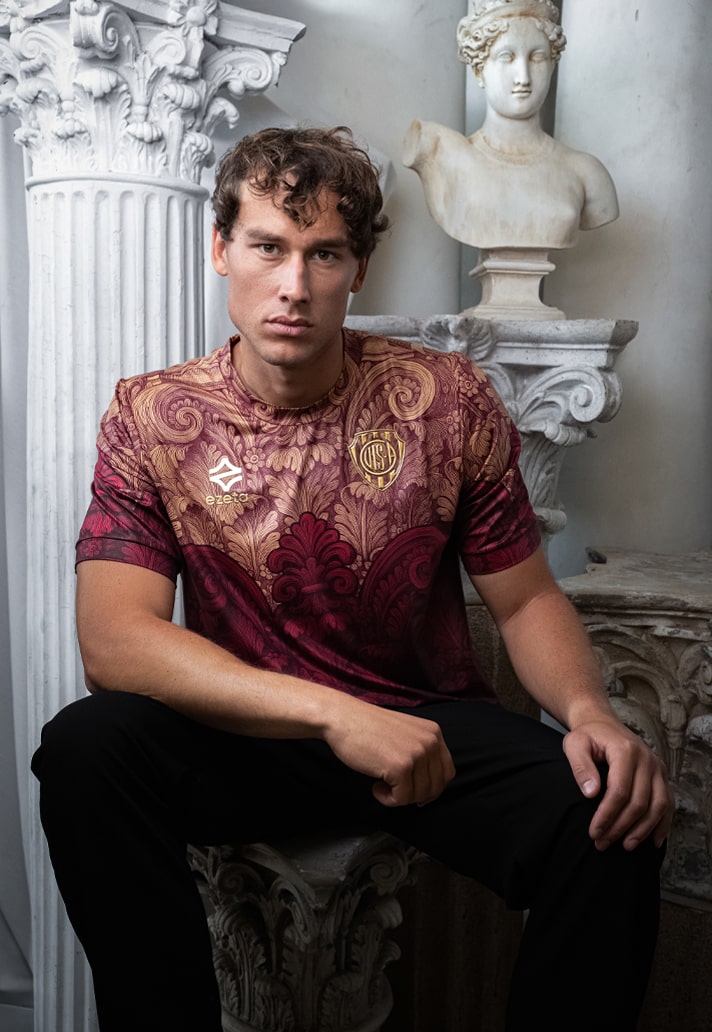Ezeta continue to prove that football shirts can be canvases for culture, not just kits for competition. Vis Aurelia may play in the shadows of Rome, but with designs like these, they’re wearing history on their sleeves.