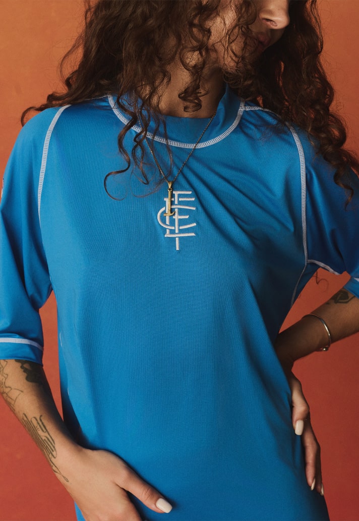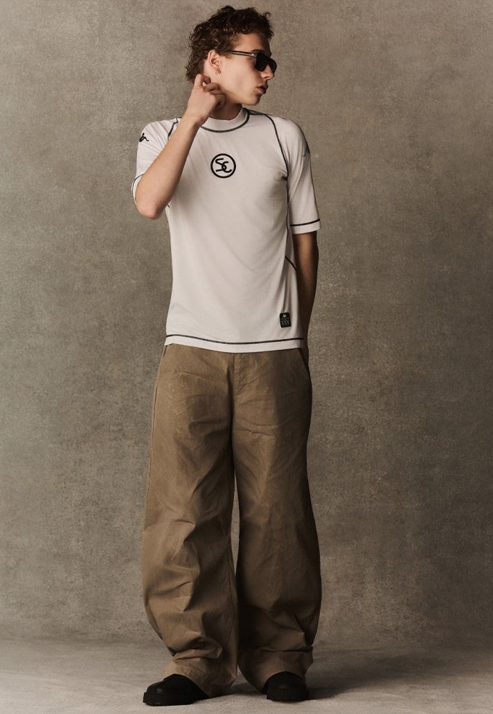 The fit is unmistakably modern Kombat: tight, minimal, and engineered for motion. Built from recycled fibres, lighter than the 2000 original, and carrying that same sense of athletic tension. The kind of shirt that looks fast even on a hanger.