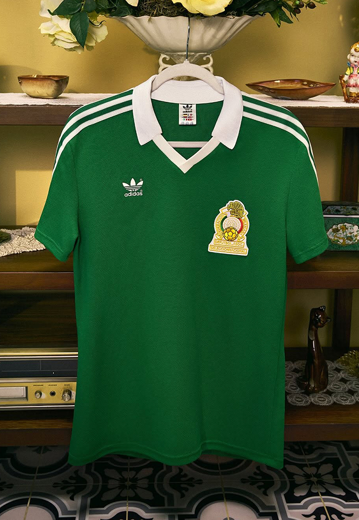 And last, but definitely not least, is the Mexico 1986 home shirt. Taking it right back to the prime 80s. This is instantly recognisable. Clean, simple, and smart. Traditional green palette with a touch of white across a very vintage collar. You can’t help but love it. And who doesn’t love seeing the Trefoil on a football shirt…