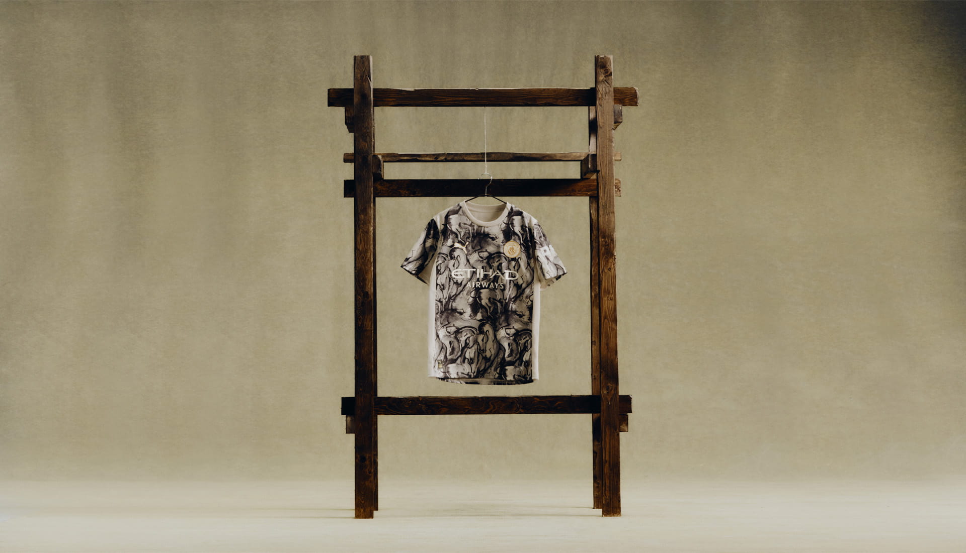 Set in earthy, neutral tones, the Man City 2026 Year of the Horse kit draws heavily from traditional Chinese ink wash painting, or shui-mo hua. A beige base provides the canvas, layered with a dense, abstract pattern of horse heads across the front of the shirt. The result is bold but refined — a graphic that rewards a closer look, balancing artistry with edge. It’s a design that captures both stillness and motion: the calm of vintage Chinese portraiture fused with the relentless momentum of a team built for the highest tempo.
