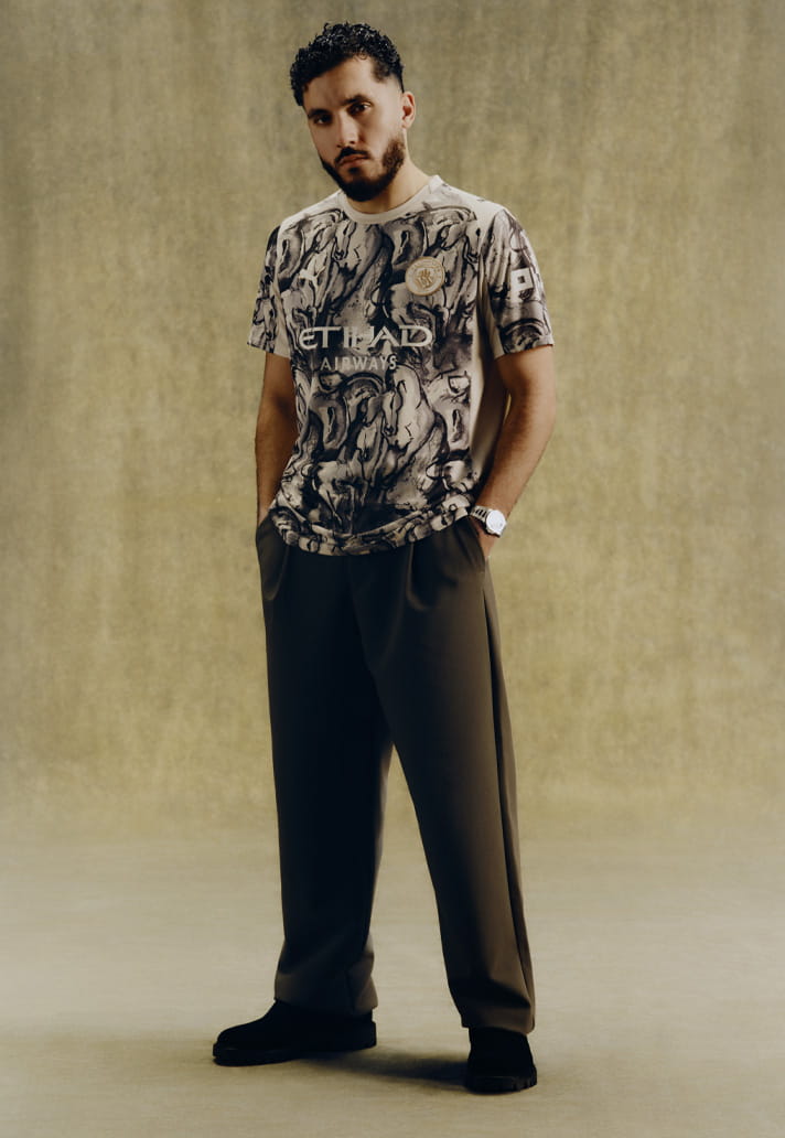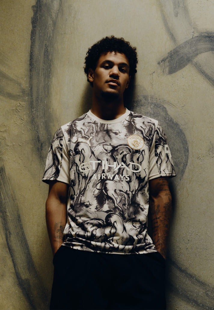 At the heart of the jersey sits hand-drawn Fire Horse artwork, symbolising power, speed and spirit — all traits City fans will recognise instantly. There’s a raw, illustrative quality to the execution, giving the shirt a handcrafted feel that elevates it beyond a standard special edition.