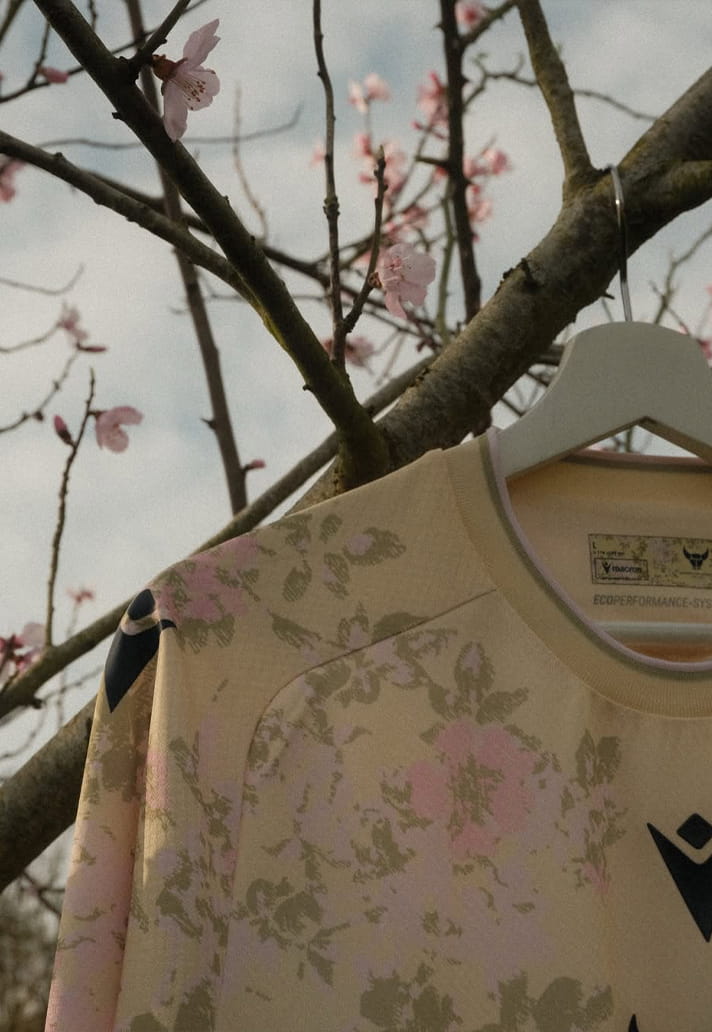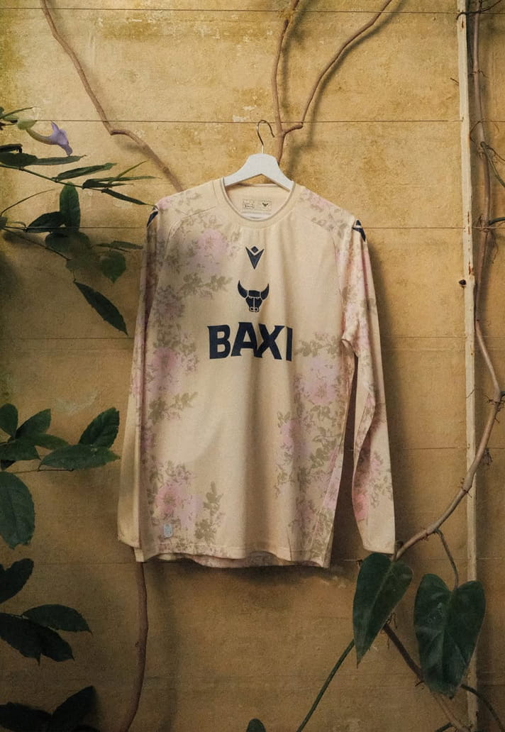 Set to be worn later this summer, the design draws directly from Study of Wild Rose, the delicate watercolour by Victorian writer, artist and social reformer John Ruskin, whose ties to Oxford run deep. A soft pale yellow base provides the canvas, while sweeping pink and green florals bloom down the sleeves and along the side panels, creating a look that feels more gallery wall than football pitch. Navy central branding grounds the piece and offers a sharp contrast, echoing the approach seen on the club’s away shirt earlier this season. Available in both long and short sleeve, it’s a design that walks the line between statement piece and wearable kit with ease.