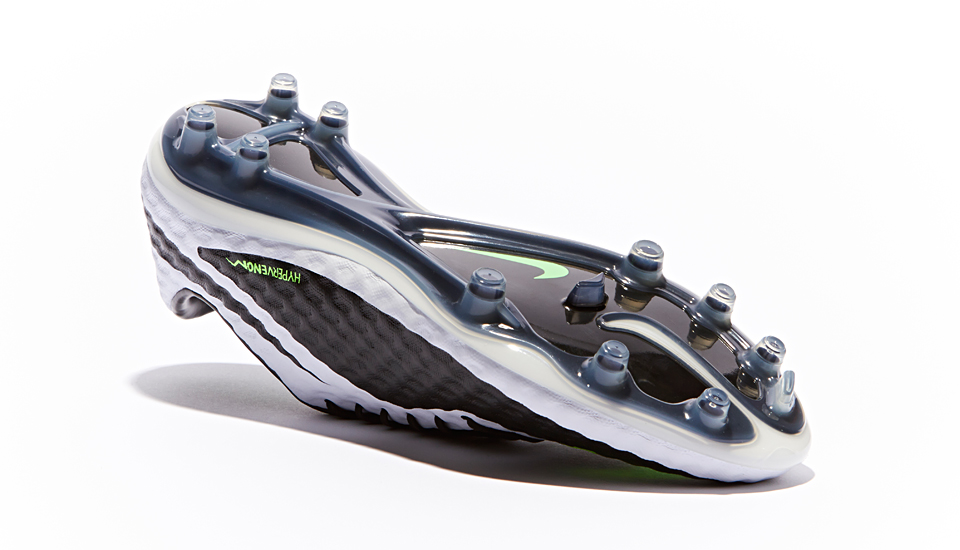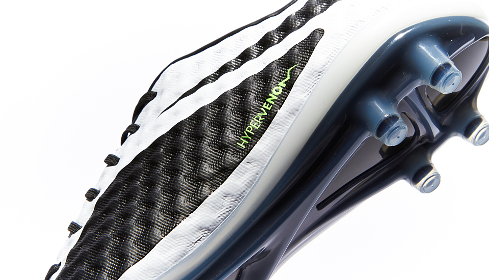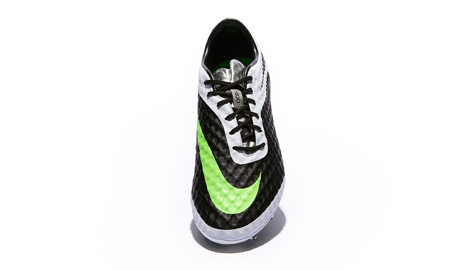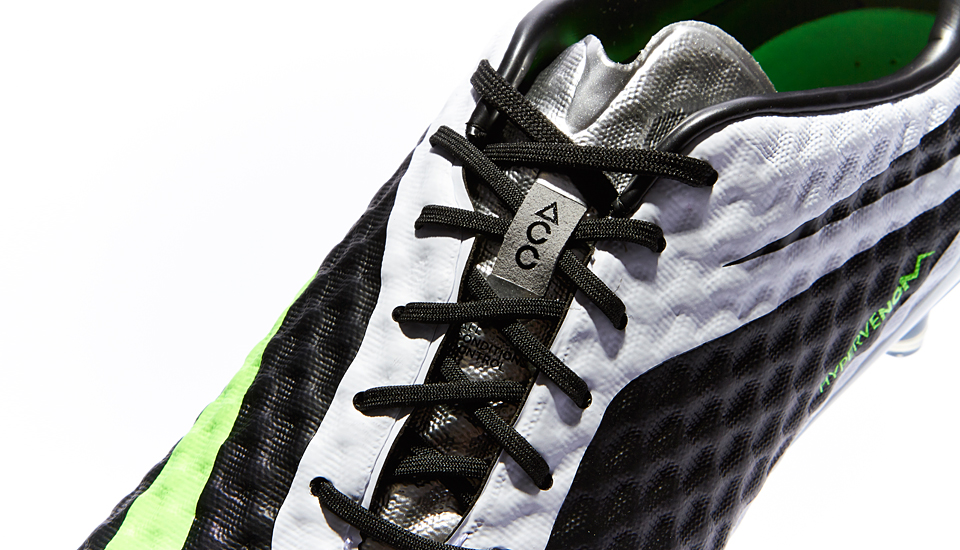 Tech-wise it's the same story. The Hypervenom upper is created using the new NIKESKIN system. This execution of NIKESKIN features a soft, supple mesh bound with a thin polyurethane film, and is finished off with Nike All Conditions Control technology (ACC) to provide the same level of foot-to-ball control in both wet and dry conditions.