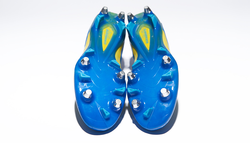 The yellow part on the front of the boots is called Organitouch, a super-thin outer film to enhance touch, aiding close ball control while running at high speeds. Implanted in the heel is what Warrior describe as a Membrane Heel Shield, which provides unseen support and protection. A durable sole plate is constructed from a tough compound materialand the configuration of the Clawtech blades (FG) offers optimum versatile traction.