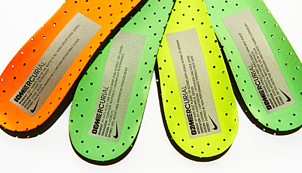 The Fast Forward collection followed; four Mercurial Vapor IX designs each inspired from the last four World Cups. The 1998 editions based on the boot Ronaldo worn in the final, the 2002 silver editions, the 2006 inspired yellow Vapor III and the Superfly editions worn by Ronaldo at the 2010 World Cup in South Africa.