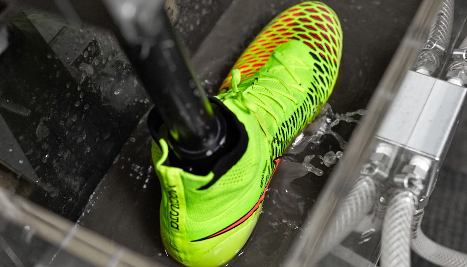 To achieve an unprecedented feel in all conditions Nike conducted a Swamp-Walk test on the Magista, which consisted of drenching the boot and measuring water retention. With each material deemed fit for purpose Nike then fuse the components together, and the result? One of the most innovative footballing products ever made.