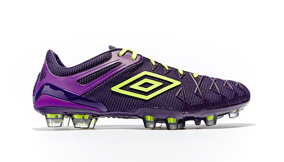 Now we can bring you your closest look yet at the new Umbro UX-1 football boots, designed in a deep purple and fluorescent yellow launch colourway. The Umbro UX-1 is made from a one-piece upper made from a light, breathable material that features a sleek webbing across the medial and lateral areas to help aid first touch.