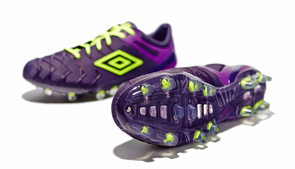 Umbro continue to evolve their A-Frame system that's been tweaked to offer more stability and security. Acting as a backbone, a dual density cage and soft protective spines cushion your heel and safeguards your Achilles. The outsole has been designed with ten forefoot studs spaced to reduce pressure and increase comfort. Four conical heel studs create superior traction, making it easier for you to change direction fast.