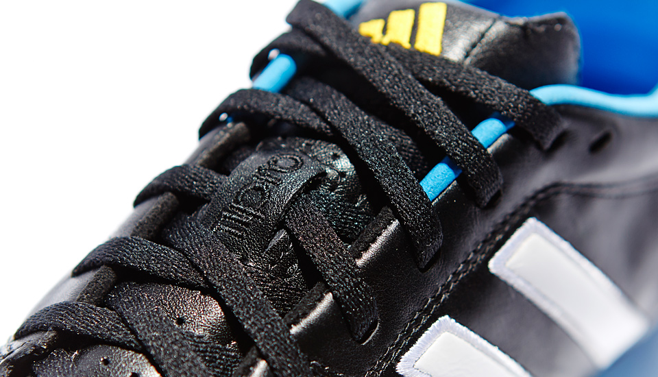 adidas have inverted the solar blue colourway of the Tribal Pack 11Pro to produce a low-key, predominantly black version of the boot which sits firmly in its familiar heritage comfort zone.