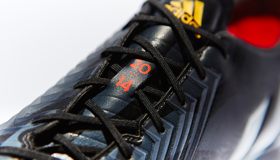 Two tones of black create the Battle Pack patterned upper, joined by white stripes and a splash of neon orange on the sole for a sense of modernity and to bring the colourway in line with the other Autumn '14 silos. This latest colourway is Predator Instinct number 3 of 14 versions of the updated silo coming out this year, incuding a couple of treats from adidas.
