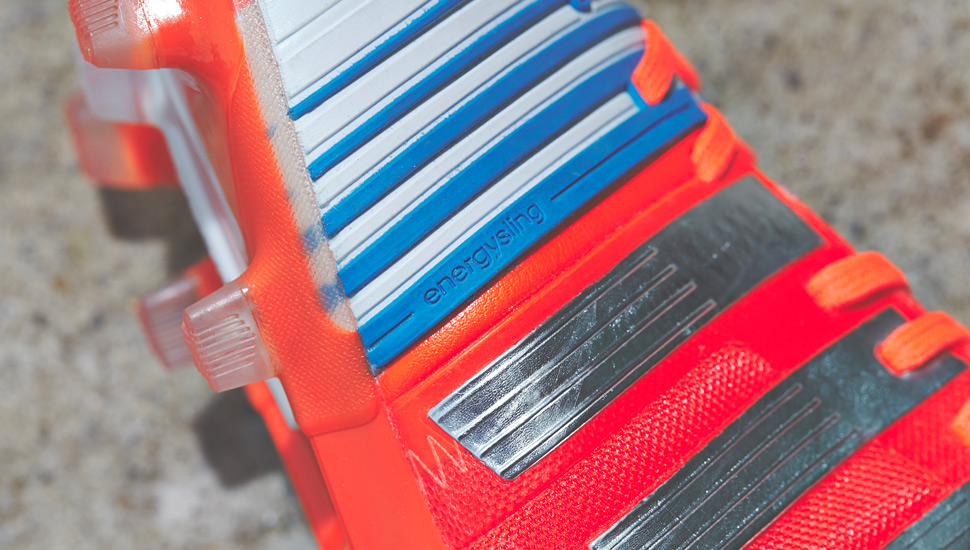 The Nitrocharge was revealed as the brand's newest silo in May 2013 and was marketed at the box-to-box midfielder, the team's "engine" and it's these players who have provided the feedback that's inspired the alterations. The Energy Sling has been moved in line with the re-positioned Three Stripes and enlarged to provide more support to players when changing direction whilst remaining locked into the boot.