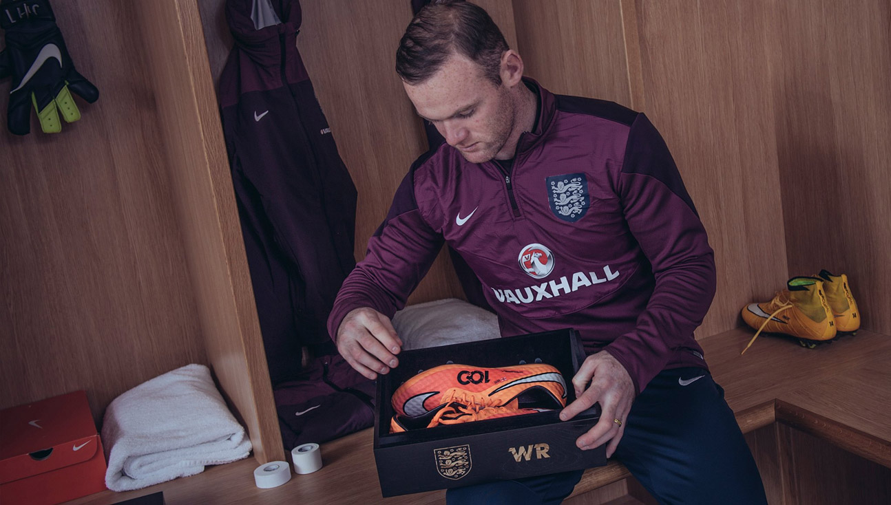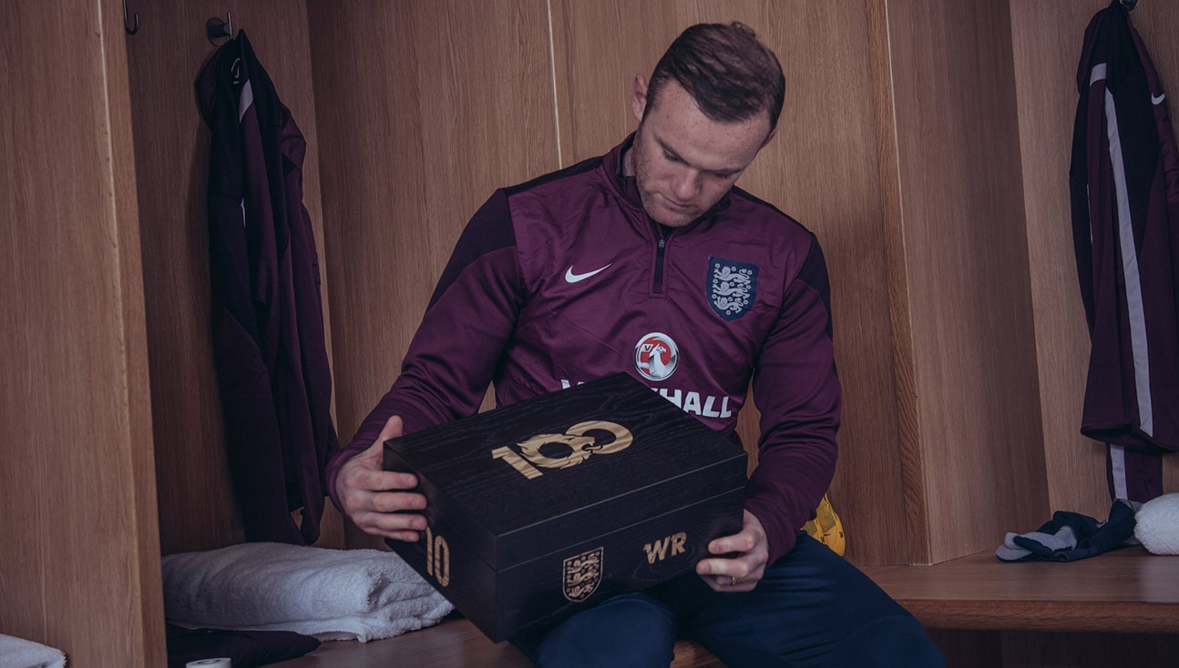 Nike deliver special 100 Cap edition HyperVenom boots to Wayne Rooney ahead of England's Euro 2016 Qualifier at Wembley.