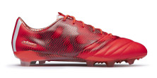 Visually, the new "Solar Red" adidas F50 adizero Leather gets the same makeover as the HYBRIDTOUCH edition, with the "Ghost Graphic" making up its full-grain calf leather upper. The leather editions do lose the DRIBBLETEX raised 3D grip texture found on the forefoot of the HYBRIDTOUCH synthetic, and instead feature the same graphic print and allover snakeskin pattern that fades in from the forefoot.