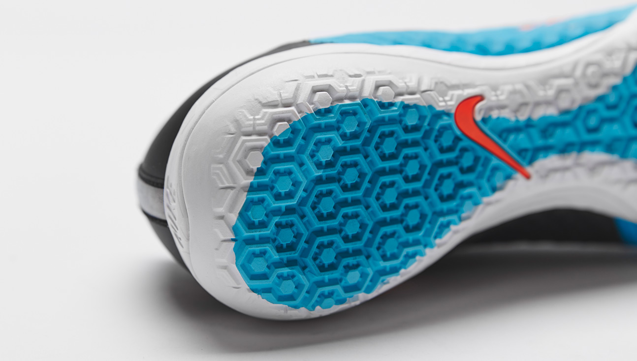 The Nike Elastico silhouette is continuing to grow in popularity since Nike’s introduction of the boots third generation model. The shoes incorporate a tongue-less upper design, which hugs the foot in the same way as the Superfly IV for a locked-in fit. NikeSkin is used for increased ball control and durability in areas vulnerable to erasion. Inside, the Elastico Finale III uses a shock-absorbing EVA material which offers a more cushioned ride on hard court surfaces.