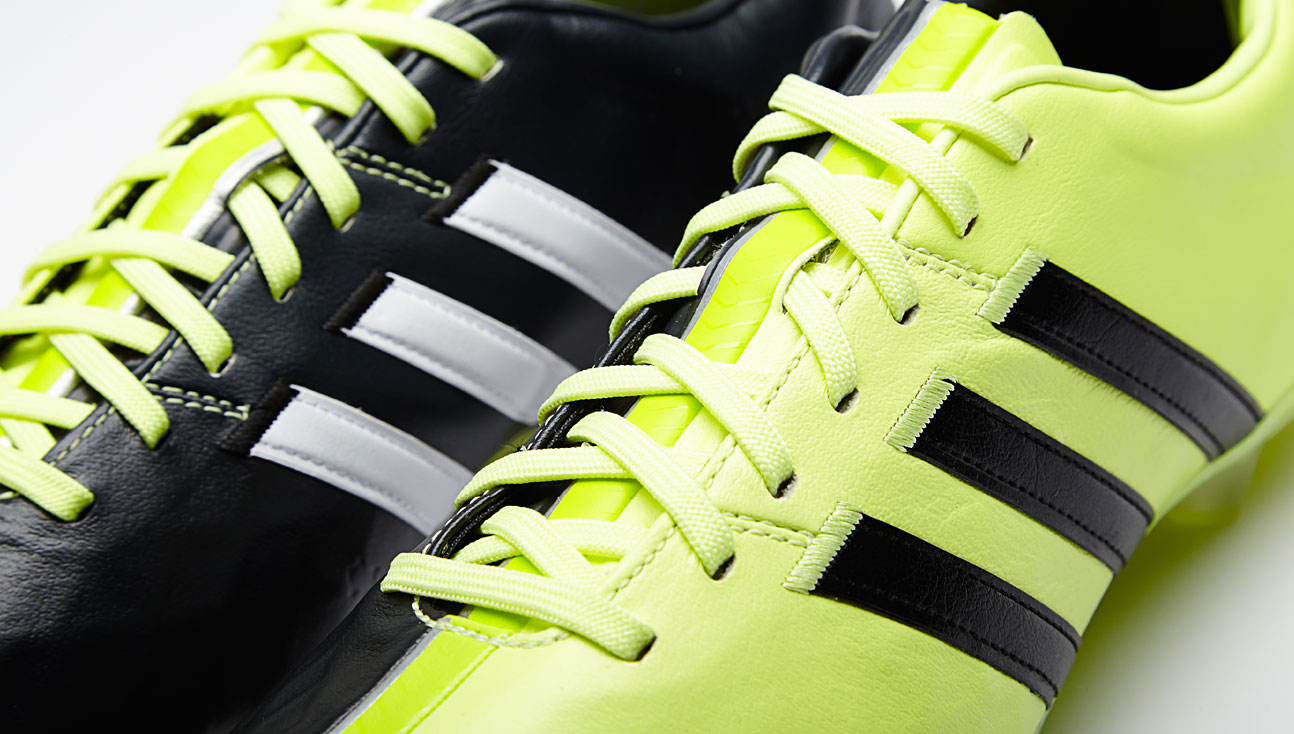 adidas drop the final piece of their latest puzzle with the release of the 11Pro. This boot is decorated in 50:50 style with half painted in “Light Flash Yellow” and the other in “Dark Grey”.