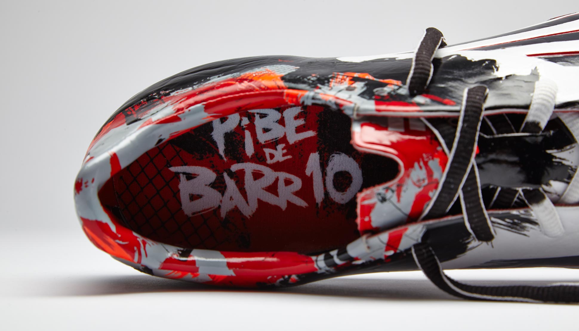 The Pibe de Barr10 is the next chapter that follows on from the Mirosar10 boot launched in November 2014 and is inspired by the Barrio of Las Heras, Rosario, where Messi learned to play the game. The streets and pitches of Las Heras was where Messi first began skinning the living bejesus out of dazzled Argentinean kids trying to kick lumps out of him on his journey to becoming one of the game's greats.