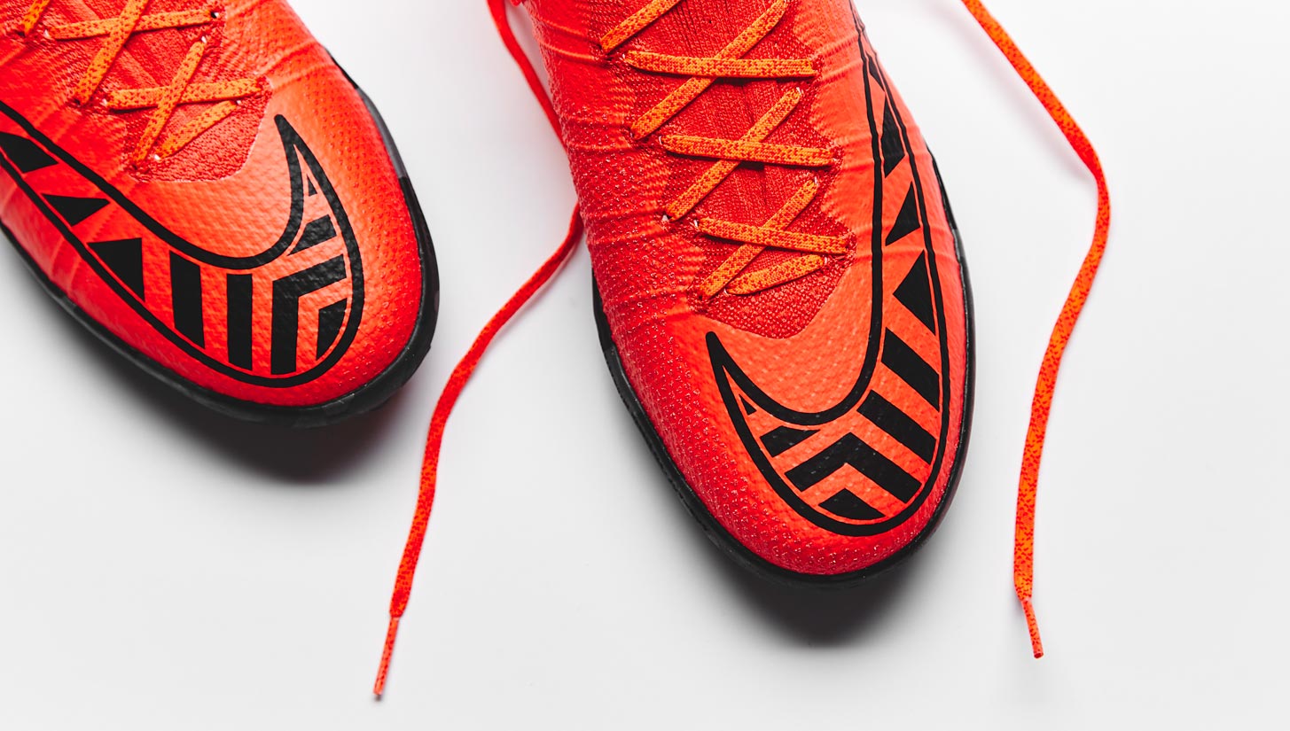 Nike are taking the small-sided game more seriously than ever and the elite-level FootballX collection confirms that. For years players who play on the streets rather than the pitch have had to settle for take-down editions of their favourite boots but Nike plan to put an end to that with the FootballX series. The new MercurialX takes the "Bright Crimson" from the "Intense Heat" Superfly IV and replaces the "Persian Violet" Swoosh with a graphic print that ties the FootballX collection together.