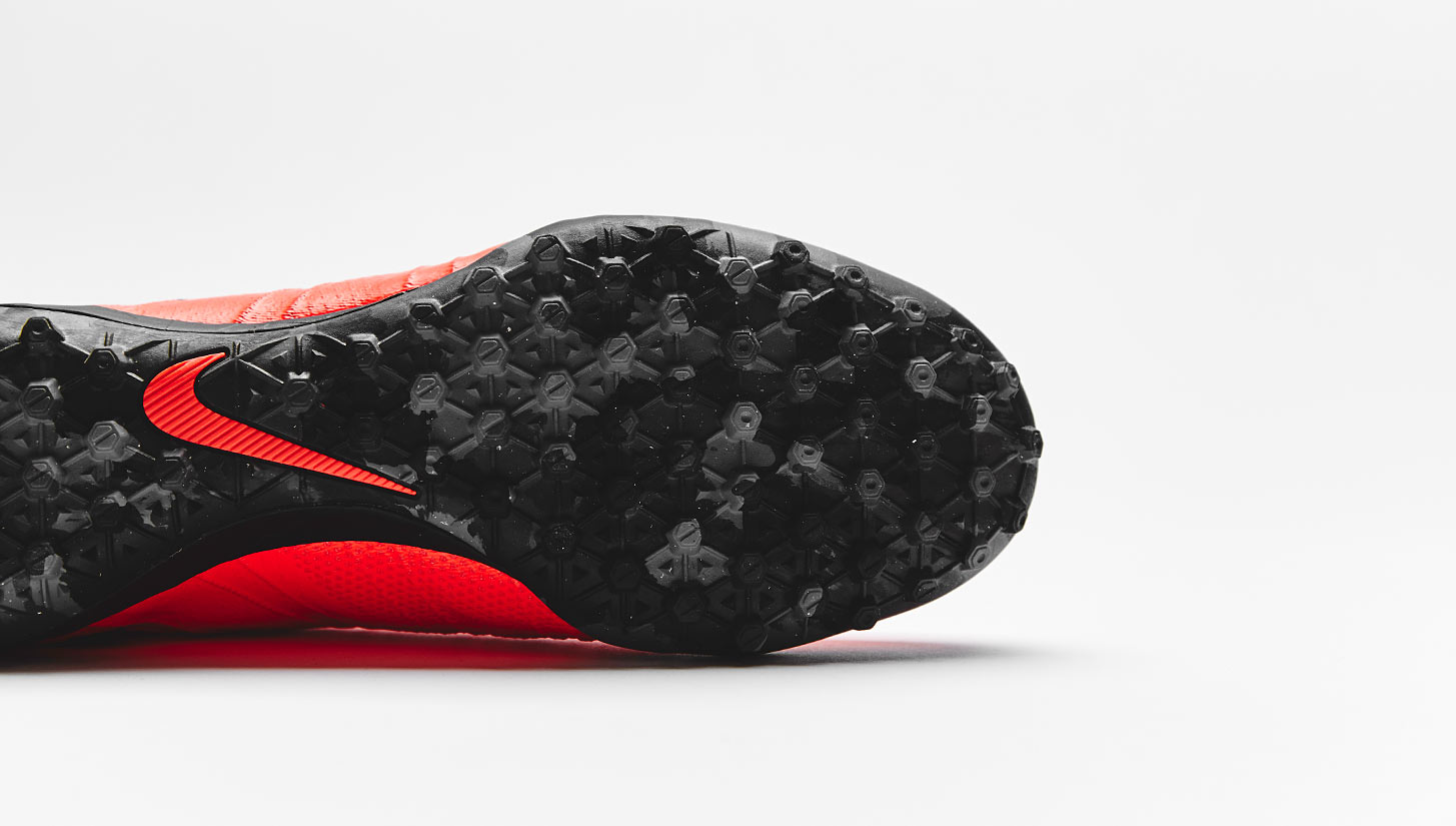 The MercurialX Turf and Indoor soles aren't the only features that differ to the Superfly IV, a number design elements unique to the small-sided game have been introduced. A low-profile Phylon cushioning is used for increased comfort and areas vulnerable to abrasion and drag are protected with Nike Grind rubber.