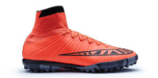 The MercurialX Turf and Indoor soles aren't the only features that differ to the Superfly IV, a number design elements unique to the small-sided game have been introduced. A low-profile Phylon cushioning is used for increased comfort and areas vulnerable to abrasion and drag are protected with Nike Grind rubber.