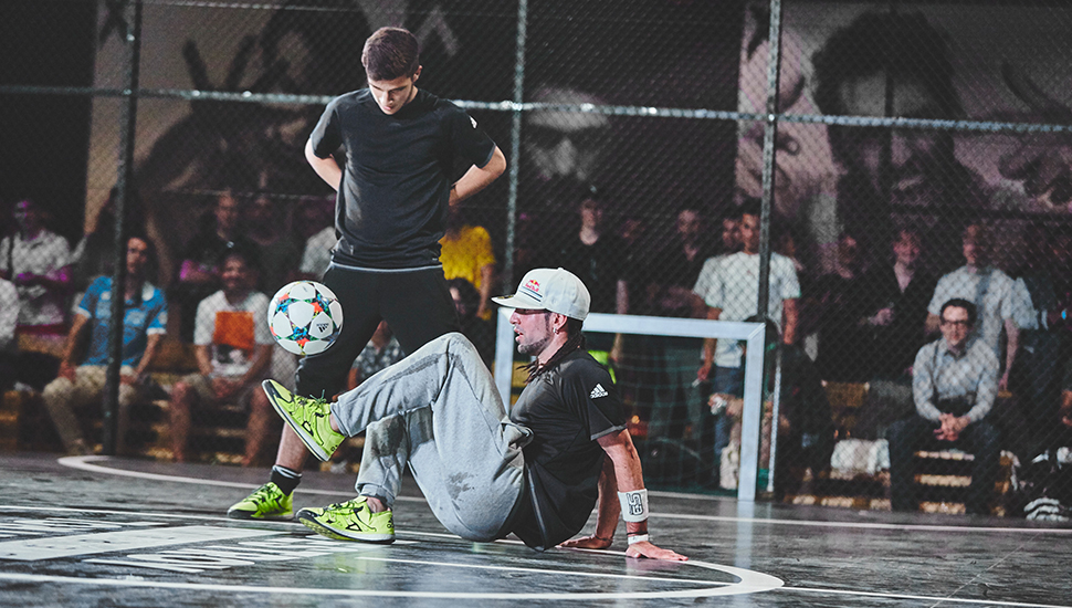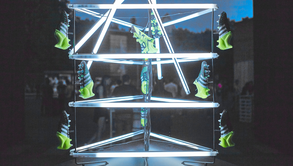 On the eve of the Champions League Final in the heart of the city adidas hosted a night of electric playground football under a shower of strobe lights and huge beats. The forecast in the German capital as adidas strolled into town with a new found swagger? Sunny with a strong chance of outrageous tekkerz. In an exhibition of small-sided football each player laced up in the X or Ace Boost in the ultimate battle of chaos vs control.