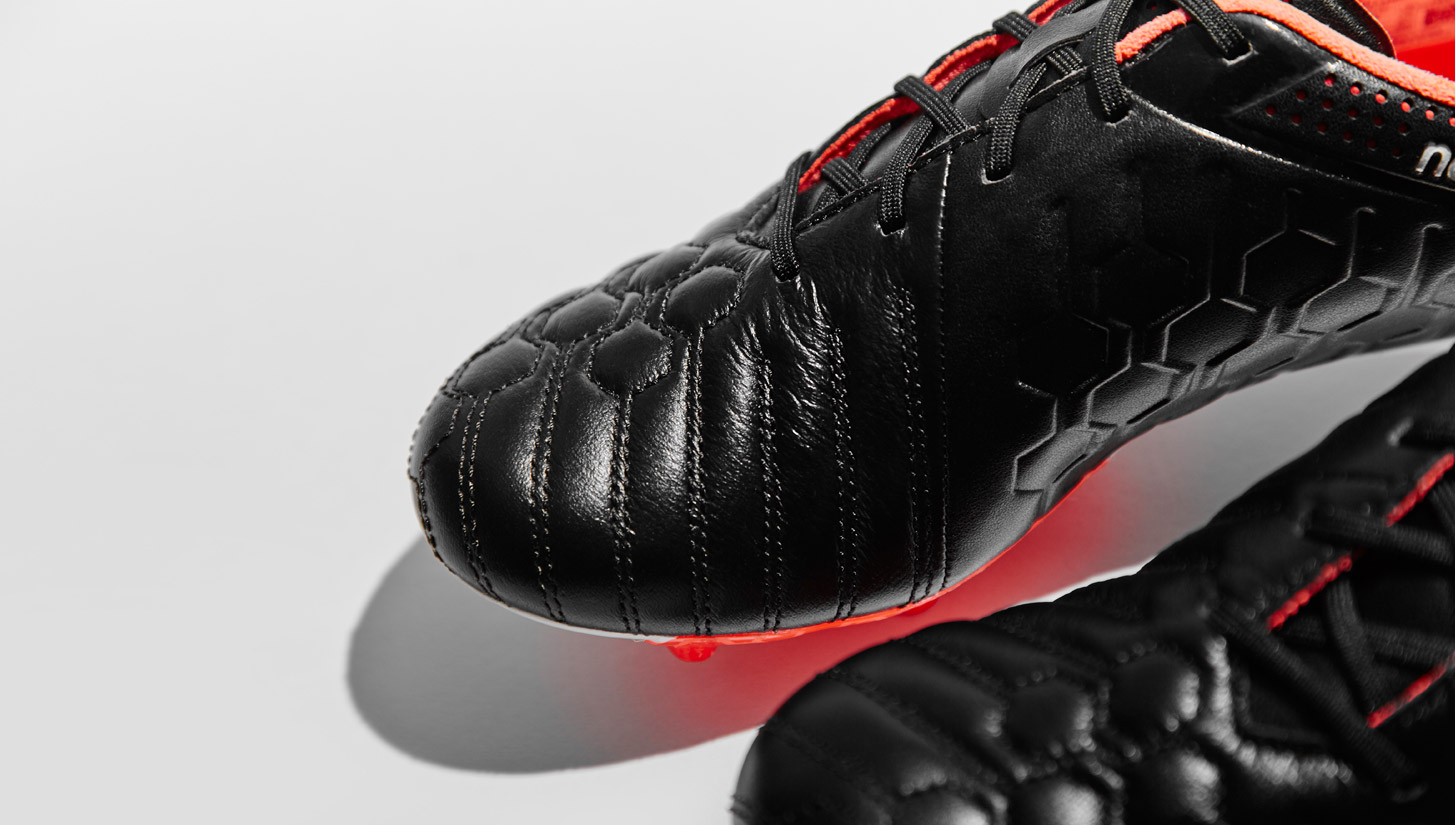 The blackout designs worn by the pool of New Balance players in the lead up to the official launch received a lot of love for the simplicity of the designs and it appears that New Balance have acknowledged that demand to deliver a boot that will tick a lot of boxes for boot traditionalists. The black Visaro is constructed with a supersoft premium K-leather upper using a hexagonal stitch pattern on the Low Pressure Zone instep to offer increased ball feel.