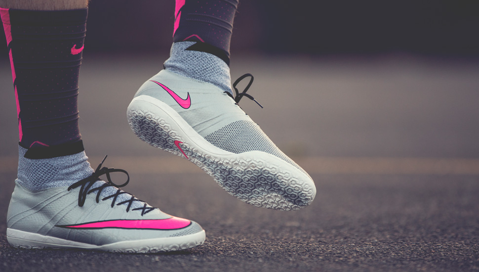 The MercurialX is Nike taking their Superfly and giving the boot a super-thin outsole to give the ultimate fit and barefoot feel that the Superfly is known for... but made for indoor or turf surfaces. With the "Wolf Grey" dominating the upper and accented by "Hyper Pink" Nike have brought their top-end futsal shoe in line with their on pitch collection as they invest more time and resources into the small-sided game.