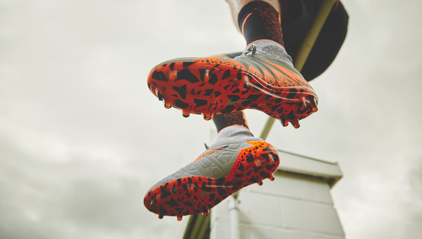The first thing that strikes you with the Hypervenom II is the stark contrast from the top of the boot to the jagged colours that run from halfway down the boot to the soleplate. Despite being launched in a "Wolf Grey", the boot is still LOUD. The bright orange with black speckles on the bottom half is the only homage to the original Phantom that you can really see from the boot, but it's certainly a very bright homage.