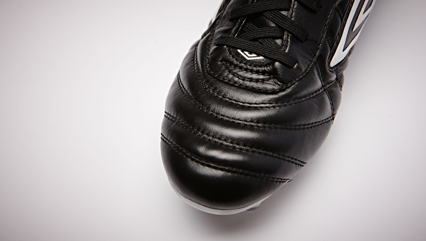 Further technical advancements include Umbro’s A-Frame overlay offering exceptional support and stability, while the iconic fold-over tongue also returns but with a touch fastening to keep it in place. A dipped Achilles heel tab reduces foot fatigue and pressure, and the pre-moulded sock liner gives enhanced fit and support.