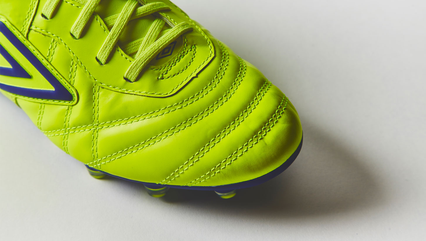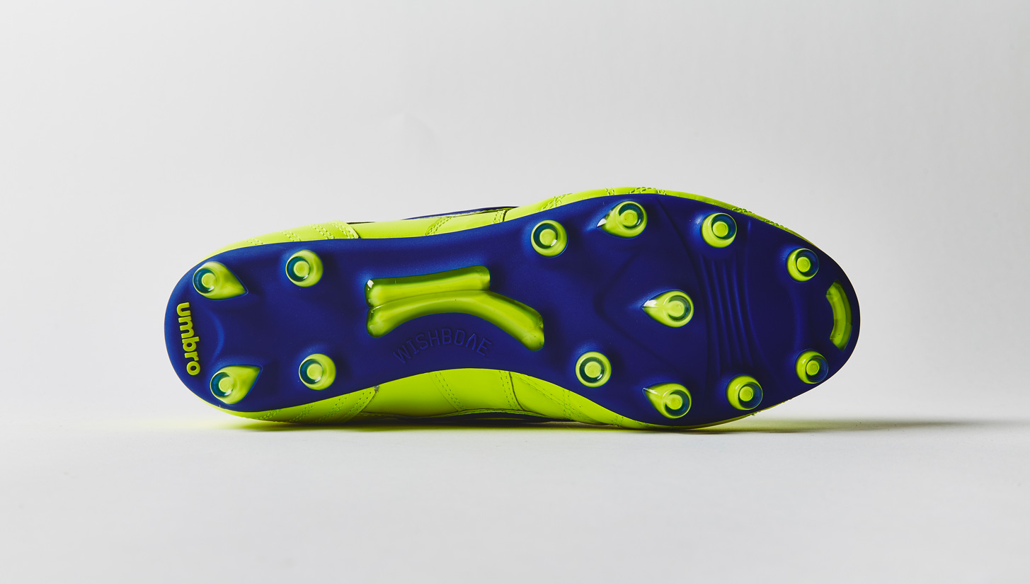 The lightweight soft leather upper offers supreme comfort & durability and is dipped in "Safety Yellow" and Umbro's recent favourite "Clematis Blue" to deliver a twist on the basic colourways that are typically associated with a heritage football boot. The rulebook of football boot design has been re-written and re-written again in the last five years and coloured heritage boots are becoming increasingly popular as players look for variety, for Umbro though, they'll offer both extremes and that has to be commended.