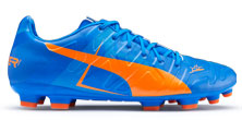 Reversing the pattern of the evoSPEED SL the left evoPOWER is orange and the right one blue with corresponding Form-stripes and studs. The Head-To-Head Duality boots feature additional graphics on the upper and will be worn by all contracted PUMA athletes for three games of over the course of the season as PUMA put their evoSPEED and evoPOWER players up against each other using a fantasy-football-esque scoring system.