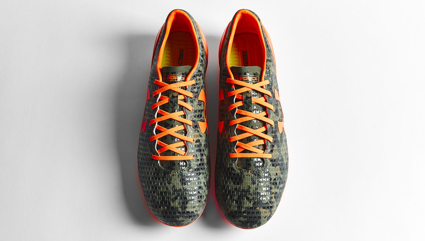 The Camo treatment is usually reserved for keeping an unreleased boot under wraps in the testing phase but Under Armour have leant their powerful brand presence to the design of a Clutchfit that combines a stealth-like disguise with a firey blast of 'Hi-vis' Orange to create a visually dominant on-pitch aesthetic.