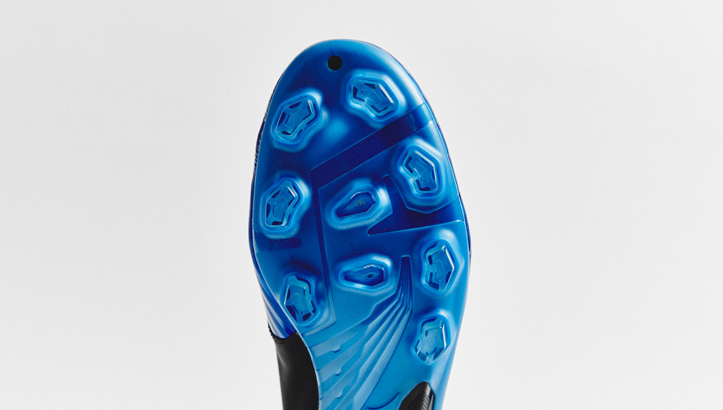 Using the same ultra-lightweight, soft and supple Primeskin and the same overall concept of achieving fast paced multi-directional play the Basara 101 introduces a change in material to the rear of the boot by the name of 'R-Fiber Control' that incorporates a 'taco-shell' esque tongue for a secure foot hold. Weighing in at 200g the Basara 101 won't be the lightest speed boot you'll ever wear but most speed boots are built for straight line running, the Basara focuses on changing direction at full speed - a more complicated process which is accomplished by the 'D-Flex groove on the soleplate.