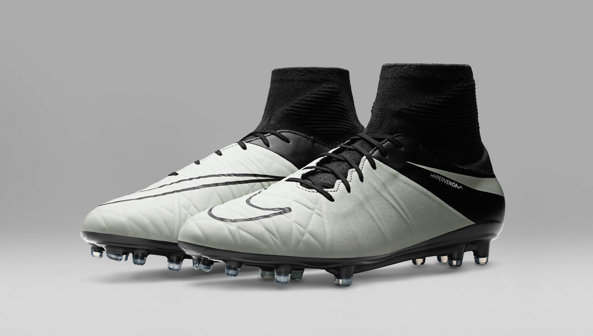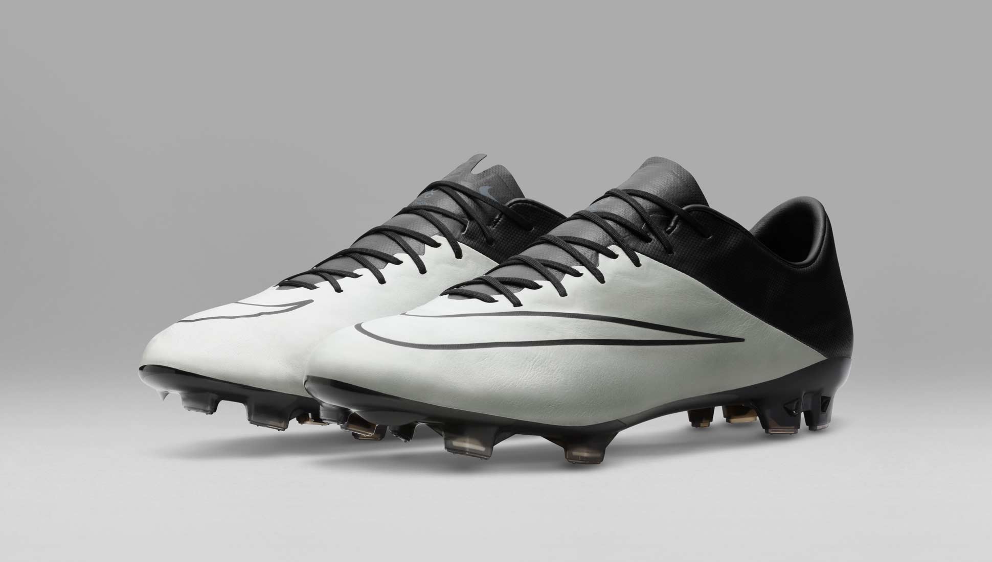 The new black and white Nike Tech Craft pack places a thin layer of leather in high ball-contact areas (the medial and lateral sides of the forefoot) on three of Nike’s football boot silhouettes — the Tiempo Legend 6 misses out this time around, remaining in last year's "Black/White/Metallic Gold" colourway. The Superfly, Hypervenom and Magista boots remain true to their original aesthetic and performance attributes, but with the soft touch and classic appeal of leather. The collection will also include updates to the Vapor X, Hypervenom Phinish and Magista Opus.